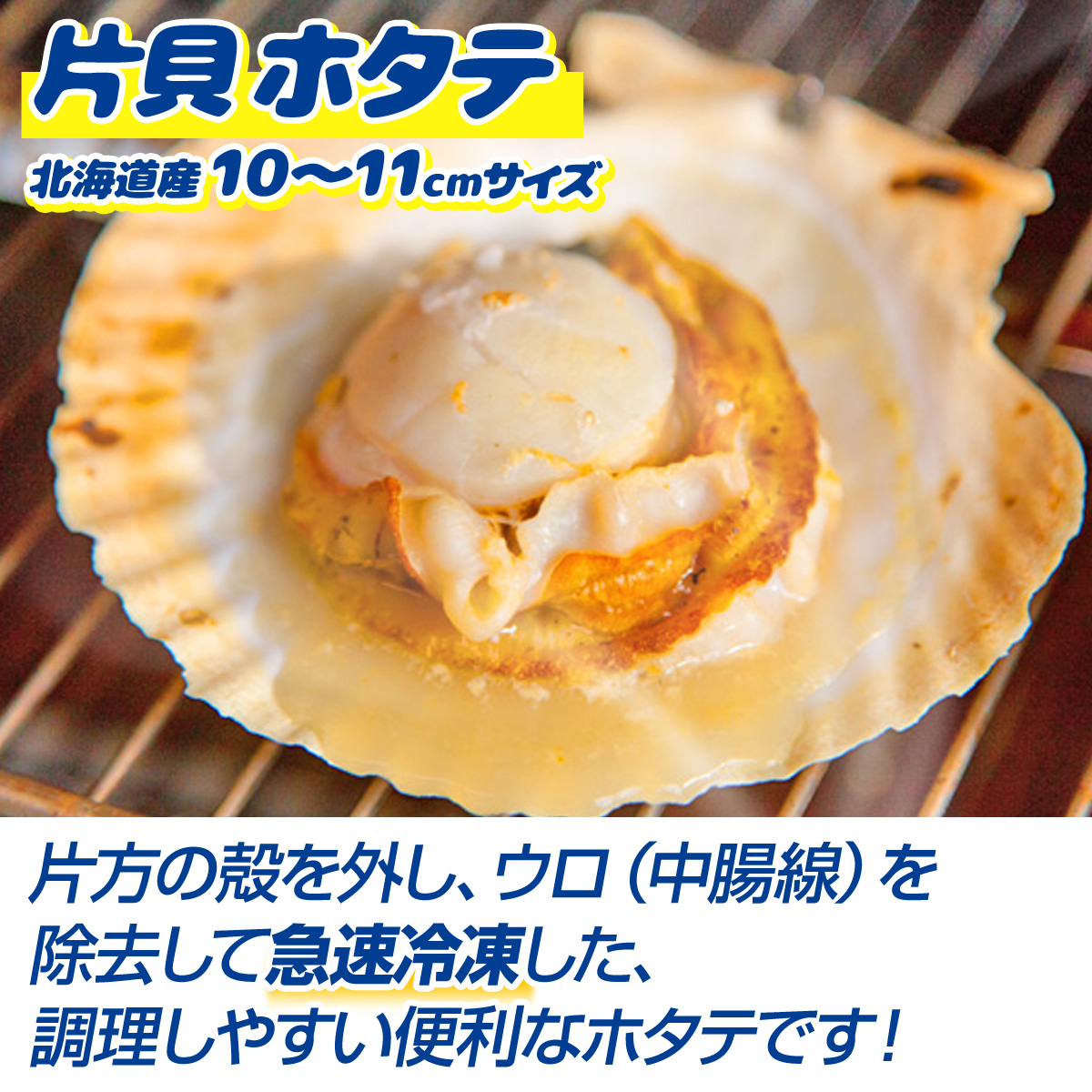 使いやすいように貝殻を一枚外してある片貝ホタテです。さらに貝殻の縁を少しだけ削っているので、電子レンジなどでも調理がとても簡単です。